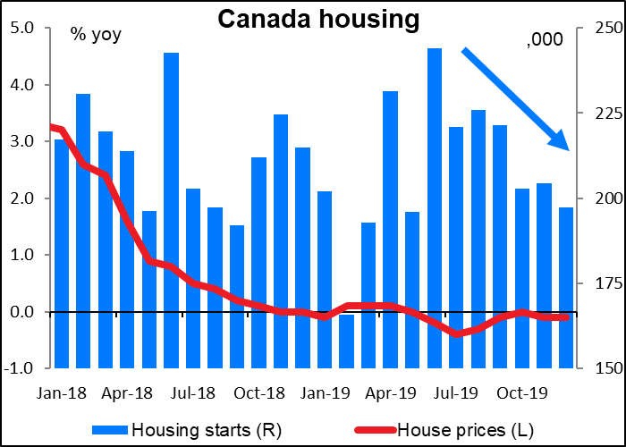 Die BoC sagte bei diesem Treffen: „Künftige Zinsentscheidungen werden von der anhaltenden Einschätzung der Bank hinsichtlich der negativen Auswirkungen von Handelskonflikten auf die Quellen der Widerstandsfähigkeit der kanadischen Wirtschaft – insbesondere Verbraucherausgaben und Wohnungsbau – geleitet werden.“ Während sich das Handelsbild seither verbessert hat, waren die Inlandsnachrichten enttäuschend – sowohl die Einzelhandelsumsätze als auch die Baubeginne haben sich weiter verlangsamt.