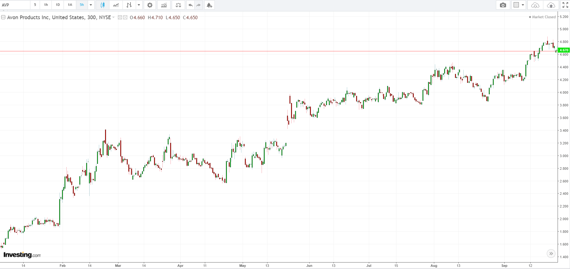 AVP has been gaining momentum on the back of its ‘Open Up Avon’ strategy. This strategy focuses on reviving the company’s direct selling business model, renovating the brand, enhancing e-commerce and other capabilities to aid a performance-driven transformation. Avon’s Natura deal, its restructuring, cost cuts and endorsement from major hedge fund managers have helped AVP skyrocket by more than 200% this year.
