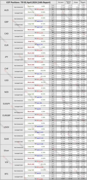 Latest Commitments of Traders (COT) report, April 2, 2024 (14th report of the year) the cut-off date.