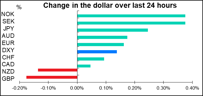We then get a slew of US indicators: housing starts, industrial production, the U of M consumer sentiment index, and the JOLTS job openings. Overall the market sees little change in these indicators, so if they come in as expected we’re going to wind up none the wiser but much better informed. That would likely be neutral for the dollar.