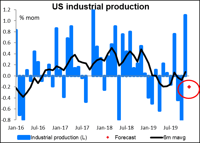 US industrial production is a big indicator for the US stock market, but not so important for the FX market. In any event, the small decline that’s expected after the surge in the previous month is about what’s necessary to keep the 6-month moving average unchanged, so in fact it represents a continuation of the current trend – USD neutral.