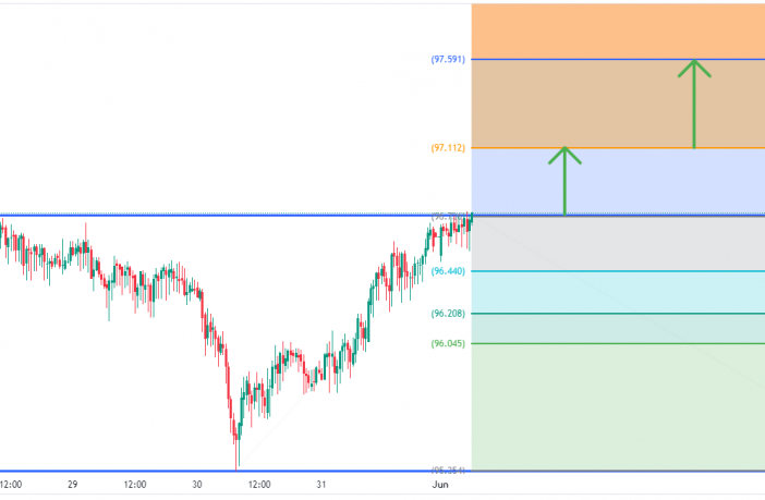 – If breakout fails, high chances of exchange rate dropping to 96.440; breaking 96.440 may push it lower.