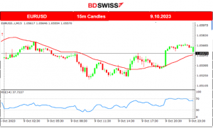 The EURUSD started to move sideways and around the 30-period MA with very low volatility. Quite normal since there was an absence of significant scheduled releases affecting the EURO or the USD. The USD which is the main driver most of the days, was not affected much, only weakened slightly and that is why the pair climbed a bit as well. However, the overall result looks flat for the trading day.