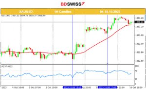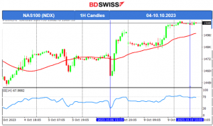 After the NFP release the NAS100 index moved to the downside but soon reversed and got out of the range with a breakout to the upside instead reaching to near 15000. All benchmark indices experienced similar paths. Later the U.S. stock market picked up momentum and caused the indices to move to higher levels. The Israel-Hamas conflict has affected the markets greatly and the NAS100 is now on an uptrend.