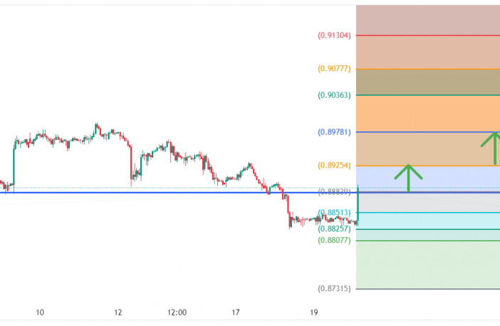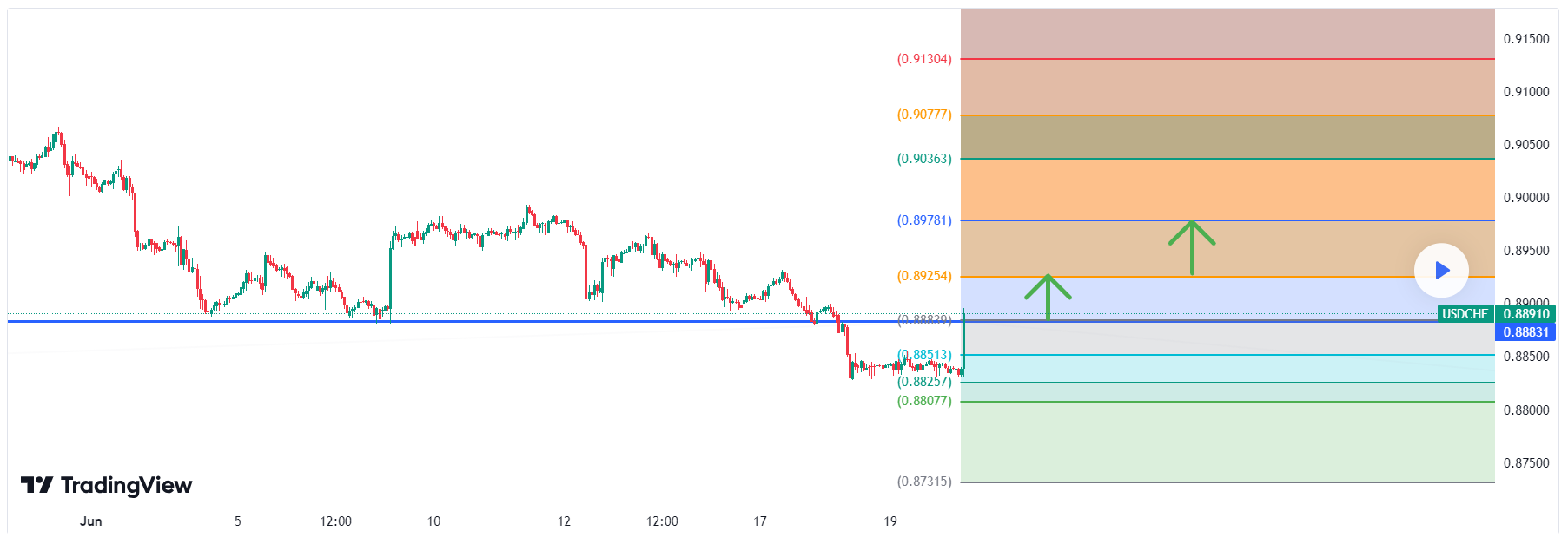 USD/CHF Resistance Breakout: Observed on the 1-hour chart at 0.88839.